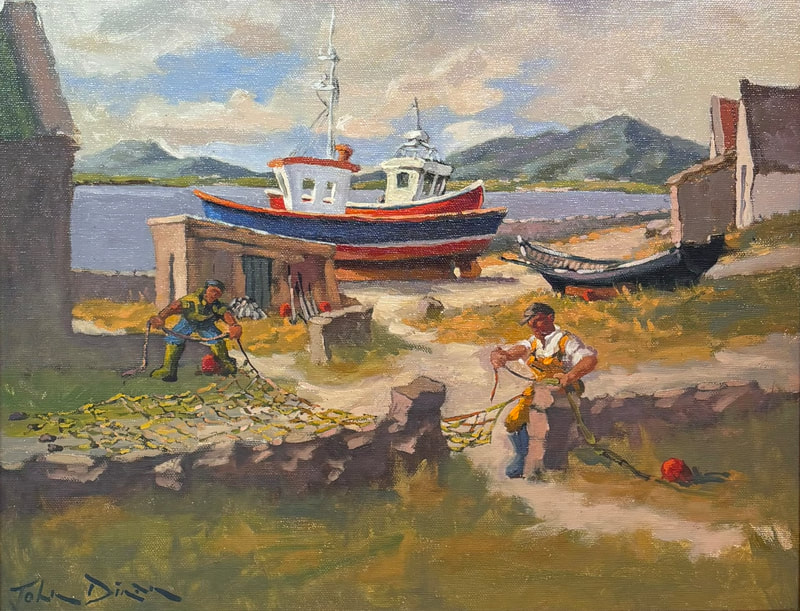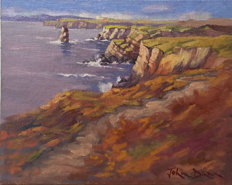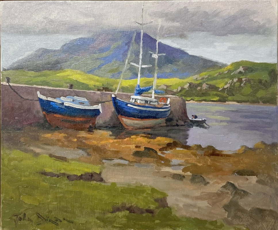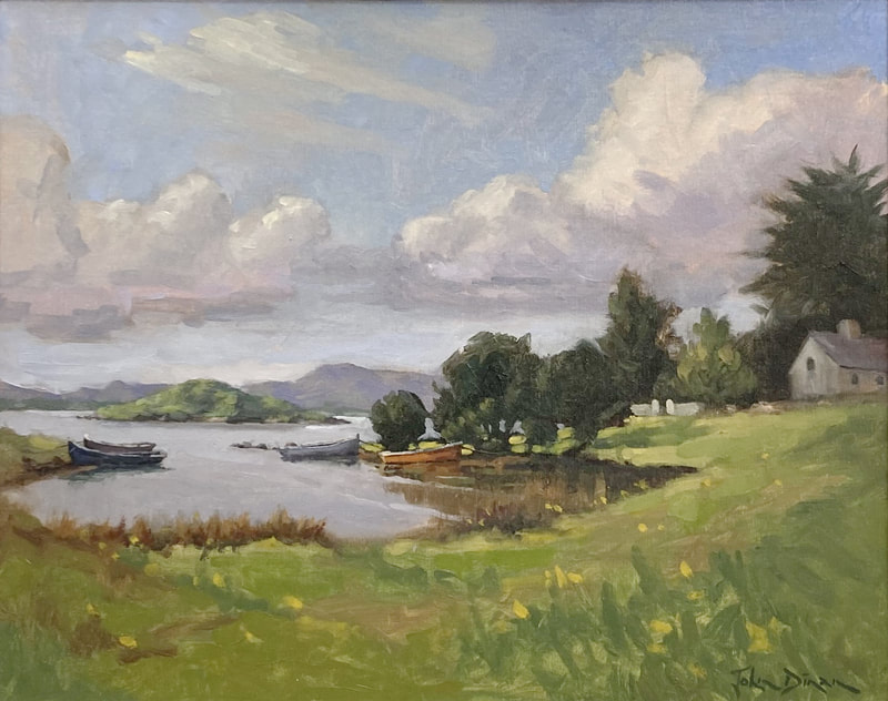 I almost always paint landscapes en plein air- outdoors - and because of weather and time constraints these paintings are often of smaller size. Sometimes these paintings suggest to me that I should paint them in a larger format, more acceptable to the Irish galleries in which I exhibit. These larger paintings - and maybe some smaller ones - are available through my Galleries - see My Galleries page. Below are smaller paintings and some larger, painted en plein air, maybe some finishing in the studio, that you can buy online through this website.